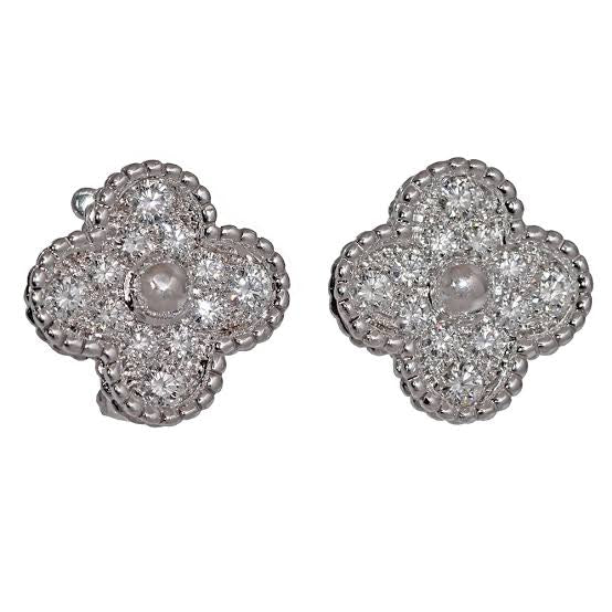 Full Silver Vintage Pave Clover Clip On Earring (925)
