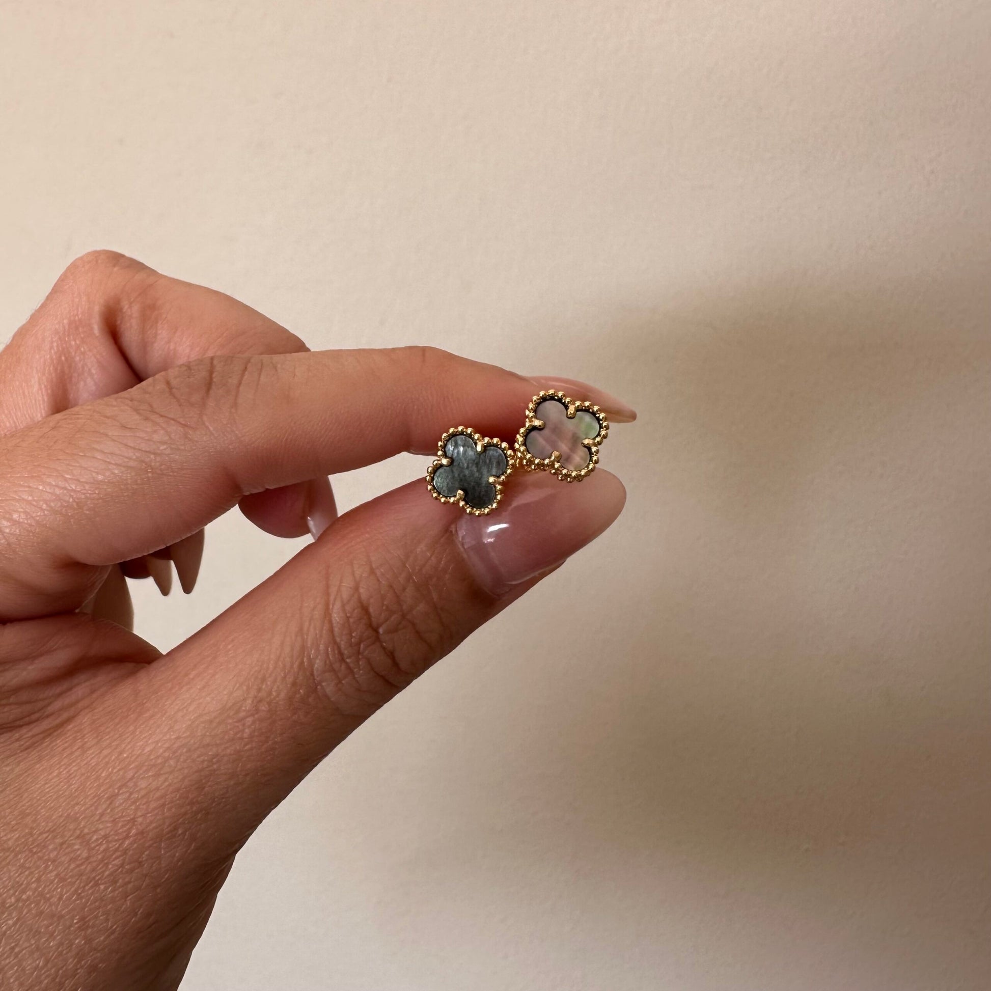 Gold & Grey Pearl Dainty Clover Stud Earring (925)