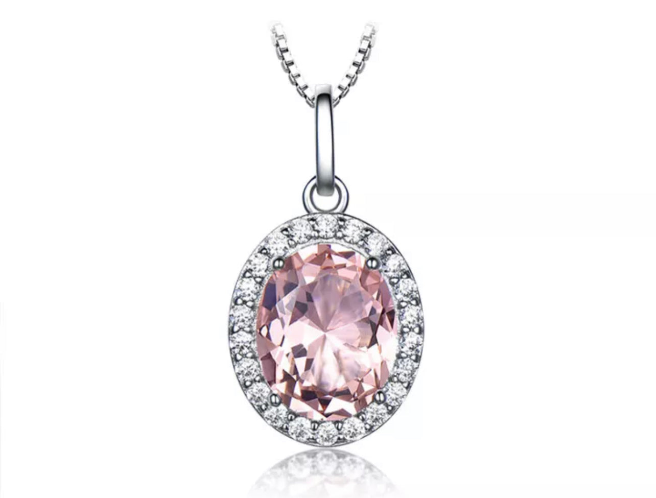 An exquisite lab created pink sapphire set with 7A cubic zirconia. Ring size 5 available in set