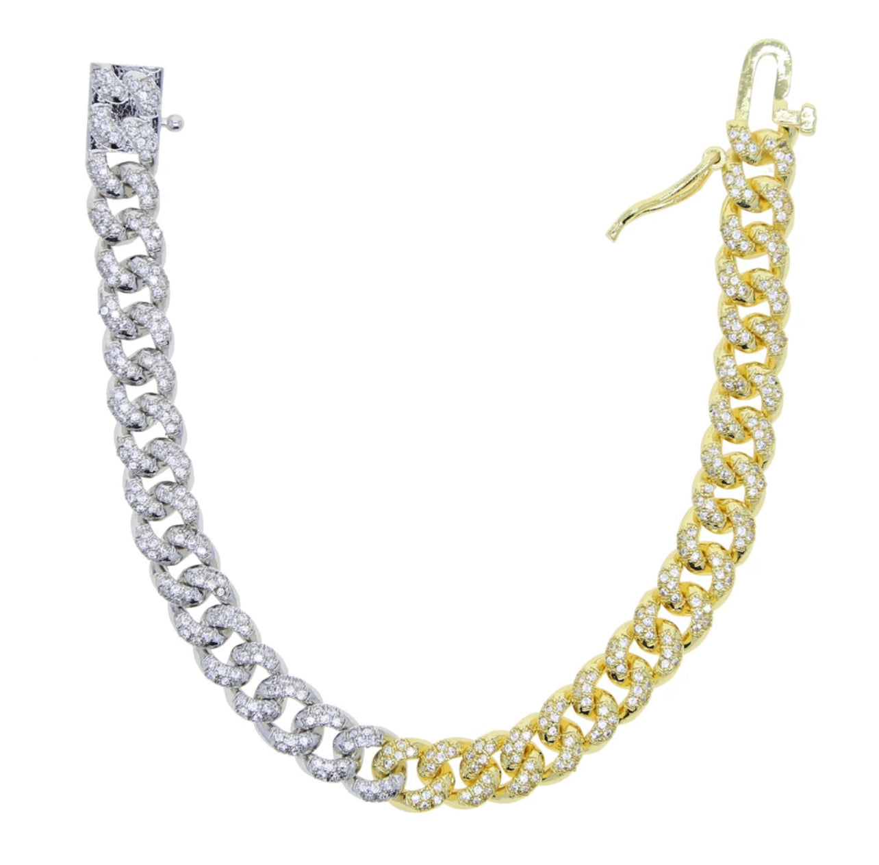 A Beautiful Cuban Design with a Two Tone Cubic Zirconia Finish in Gold & Silver. Matching Necklace Available