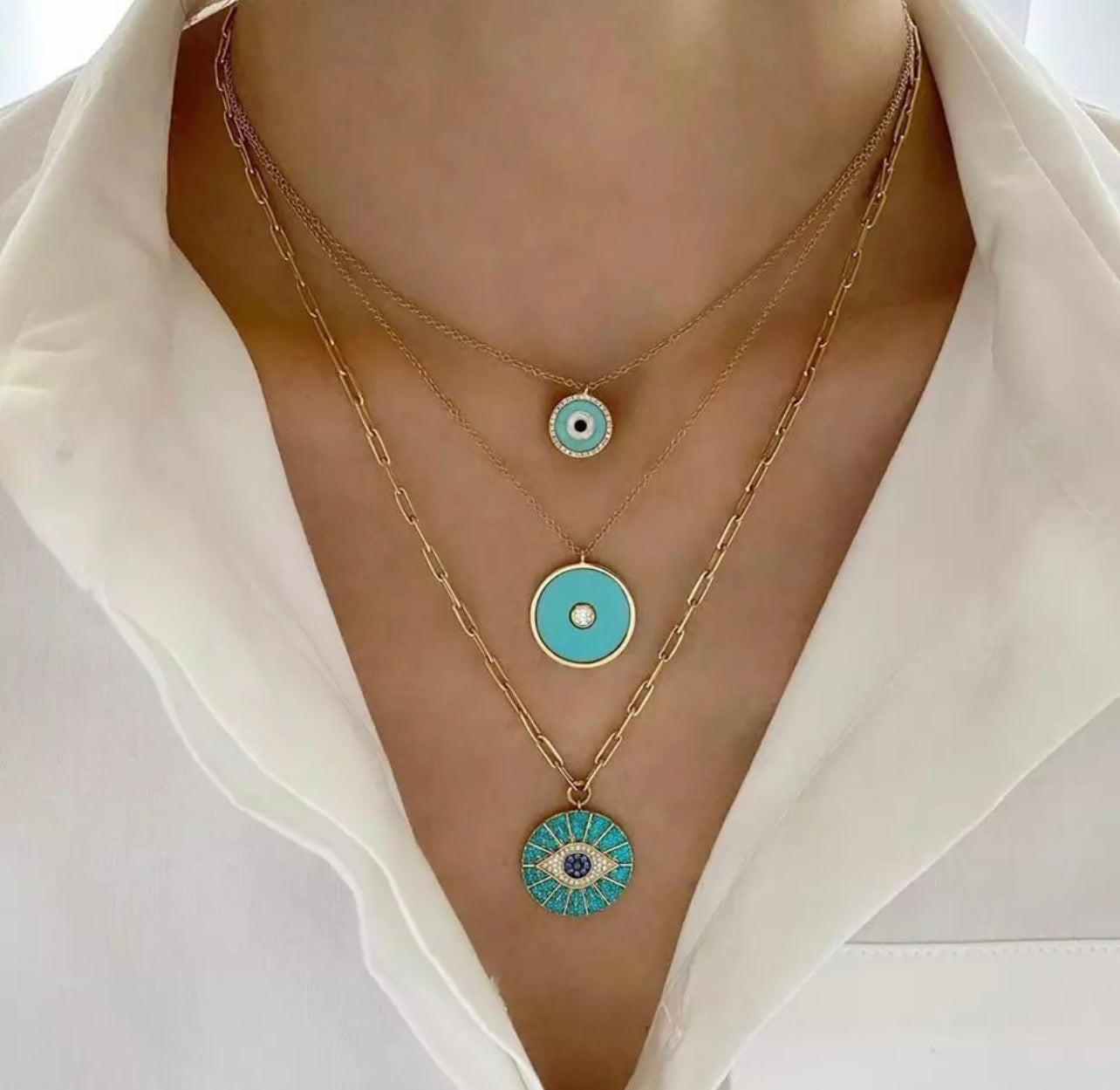 Turquoise Disc Evil Eye Necklace